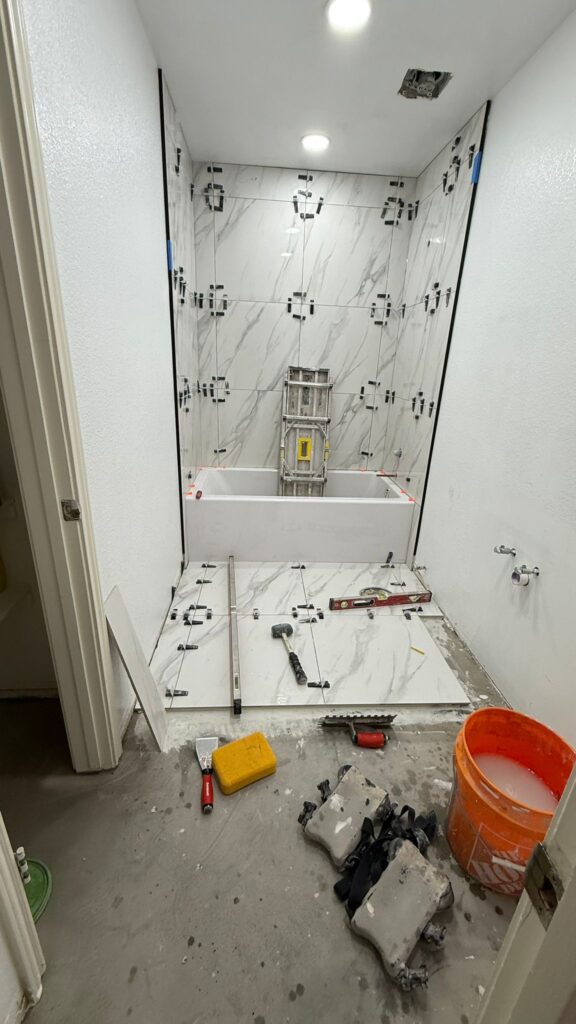 These are tiles that are 24×24 inches or larger. Technically, they are preferred in 2026 because they result in fewer grout lines, creating a cleaner look and reducing the surface area where mold can grow.